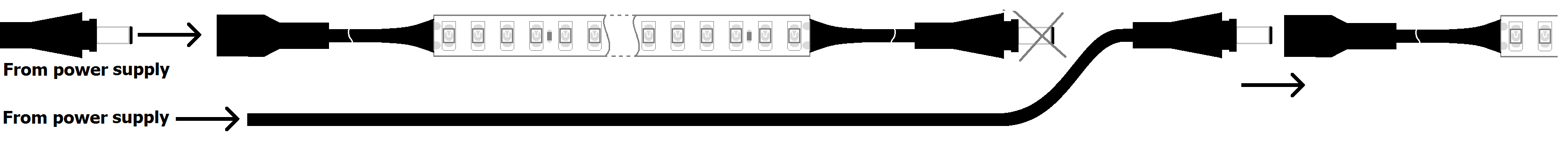 To connect beyond these lengths, a parallel wire must be run from the power supply to the further reels of tape.