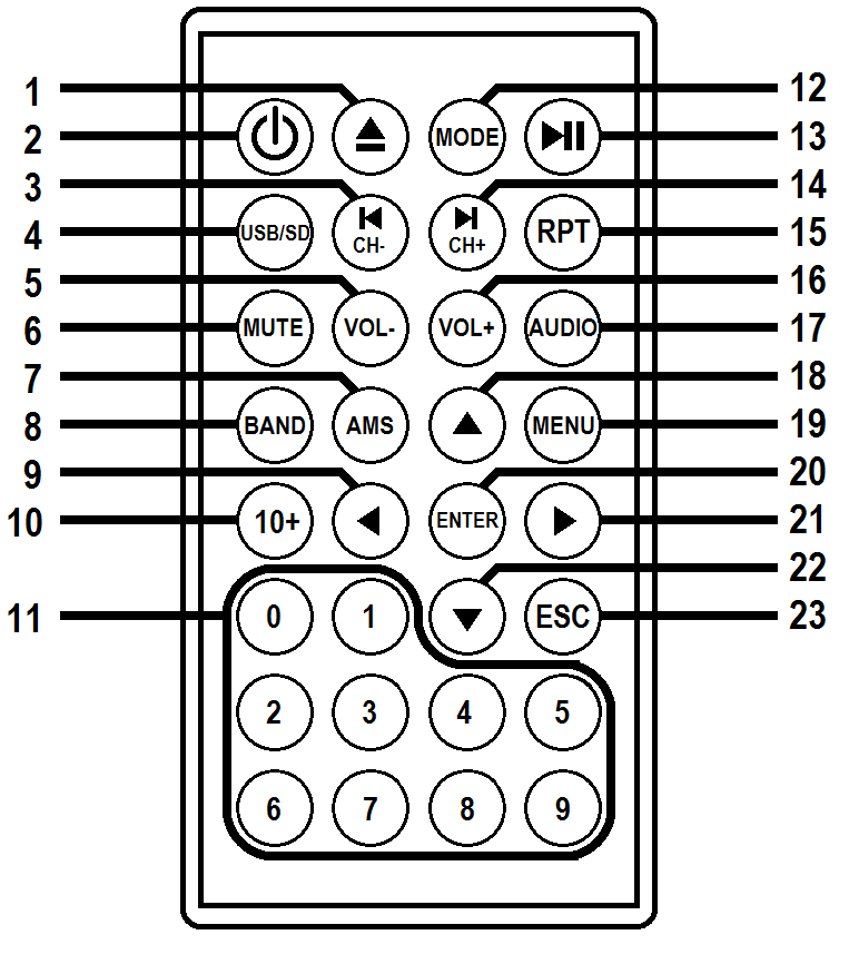 | Select MODE | Switch source between Disc, USB, SD and Bluetooth |